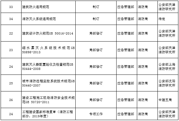 根据国家工程建筑标准化信息网上发布的《关于2019年工程建设规范和标准编制及相关工作计划(征求意见稿)》中列出了明年规范和标准的编制工作计划,其中涉及到注册消防工程师考试的就有8个。