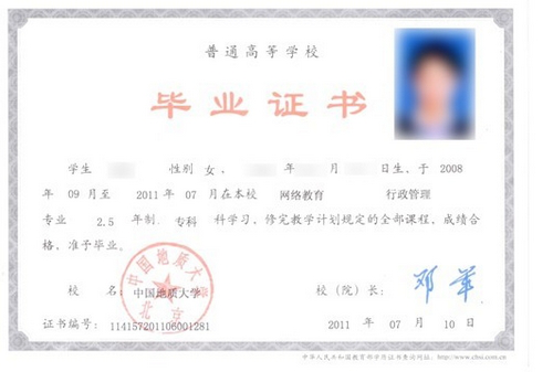学生在规定学习期限内修完本专业教学计划规定的全部课程和实践教学等环节,成绩合格,达到教学计划规定的最低毕业学分和各类学分要求,本科学生须通过教育部组织的公共基础课统一考试,毕业论文合格,由中国地质大学(北京)颁发国民教育系列的毕业证书(注明网络教育),并报教育部电子注册,国家承认学历。