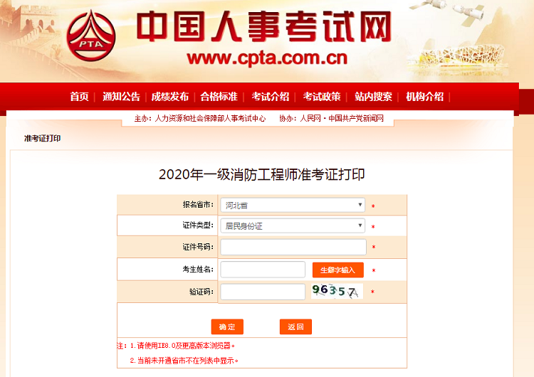 点击下图进入2020年湖北地区一级消防工程师考试准考证打印系统